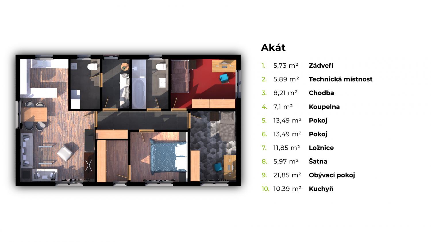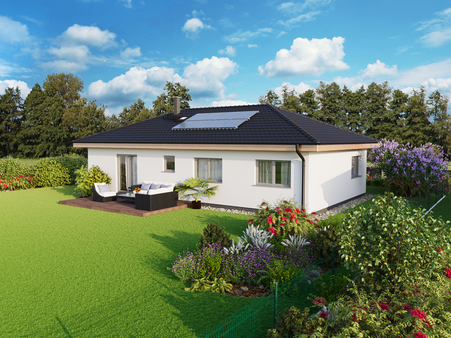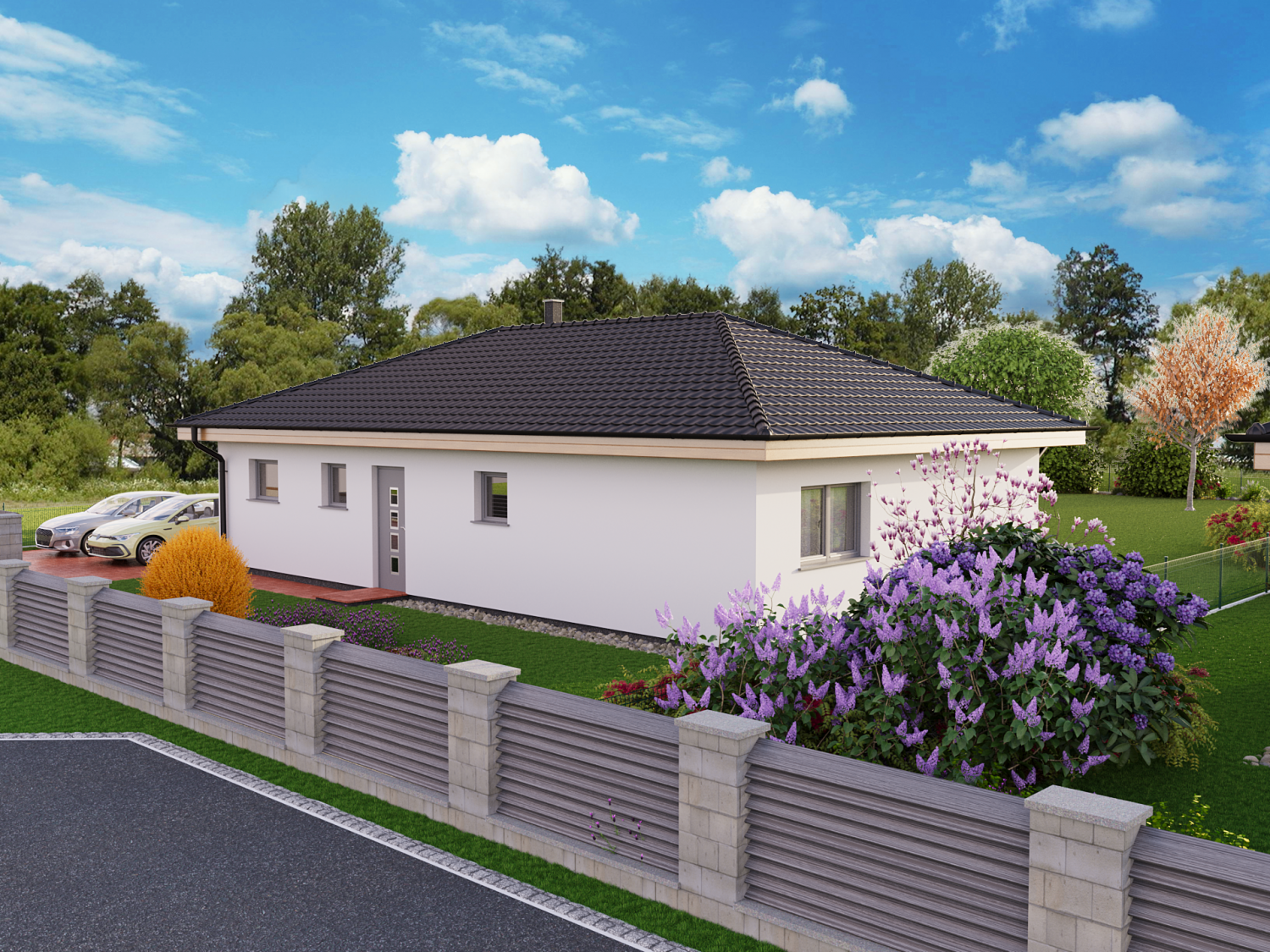 Akční, typový rodinný dům, konstruovaný technologií montované dřevostavby, je řešen jako samostatně stojící objekt, nepodsklepený, s jedním nadzemním podlažím.