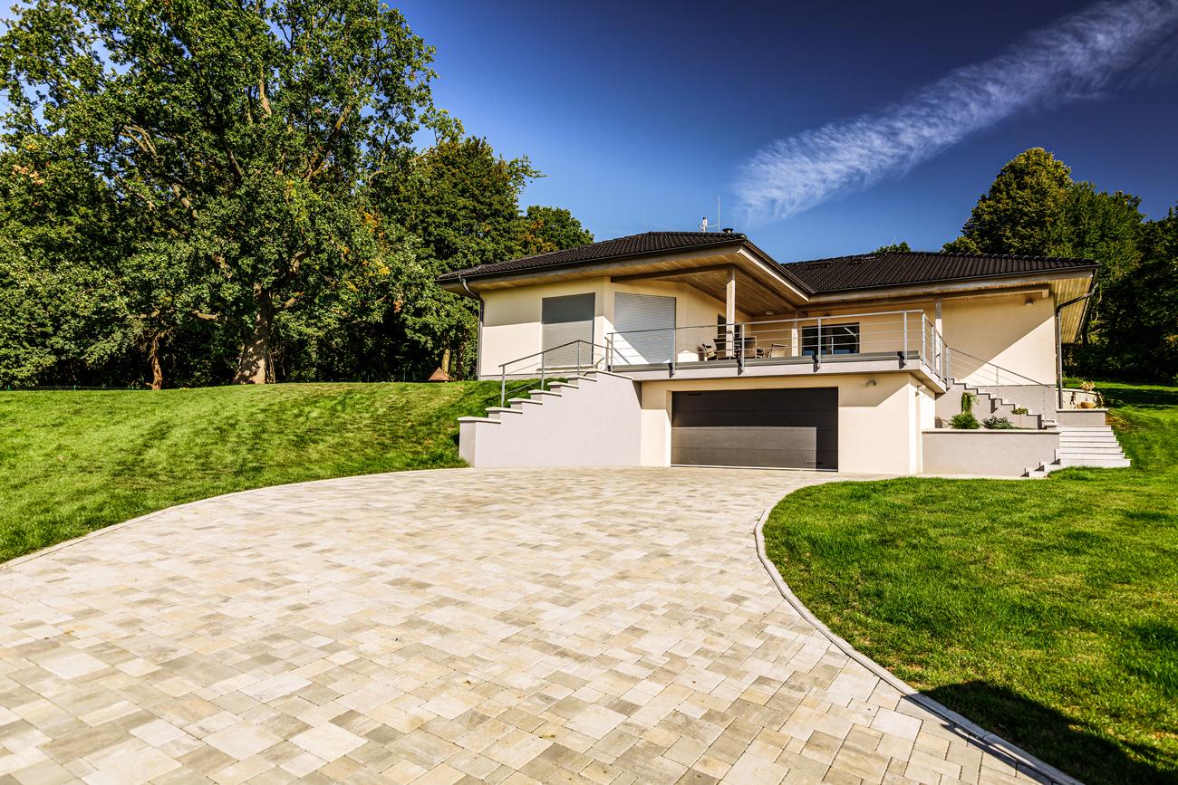 Individuální dům splňuje požadavky místní architektury a je přizpůsoben dispozici vašeho pozemku.