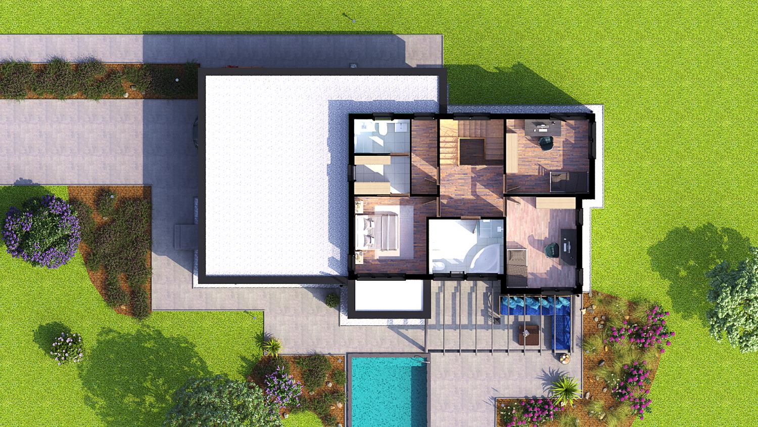 Praktický a moderní patrový rodinný dům, konstruovaný technologií montované dřevostavby.