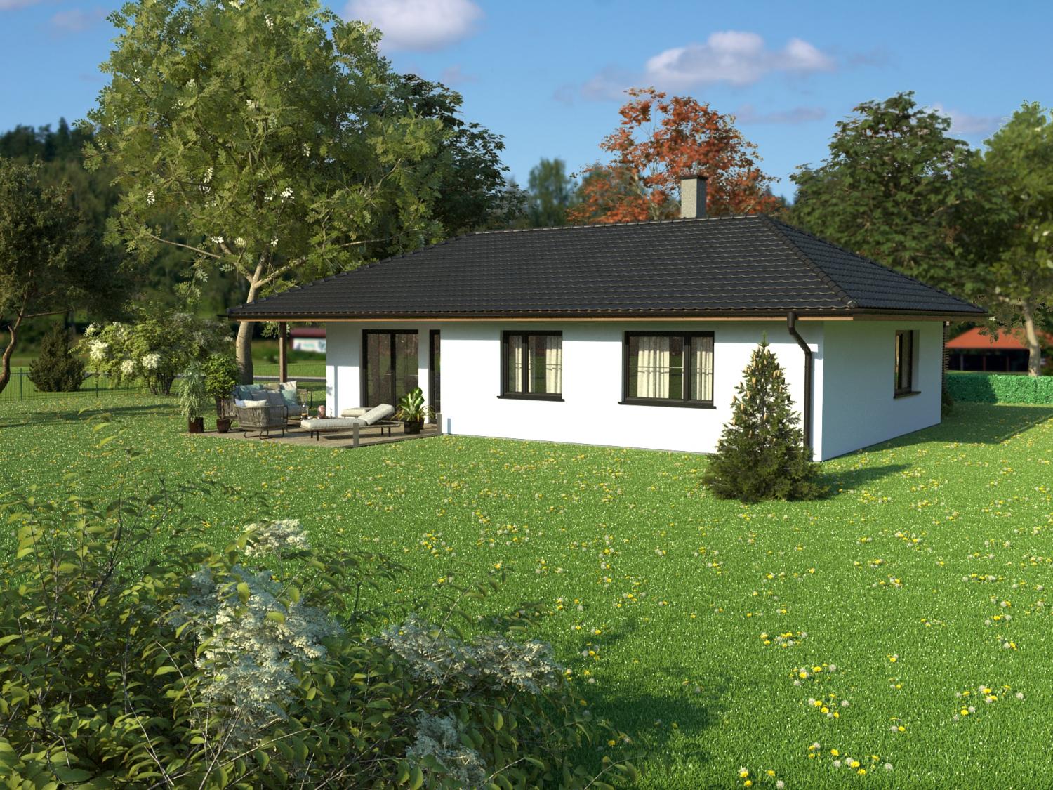 Praktický, typový rodinný dům, konstruovaný technologií montované dřevostavby, nabízí.