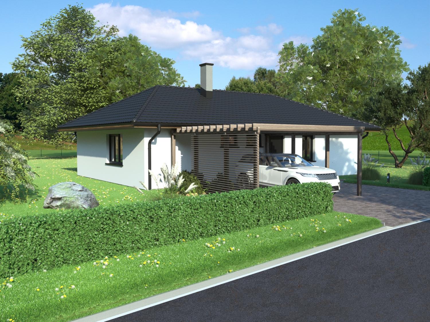 Dispozice projektu pamatuje i na volitelnou terasu, která využije zastřešeného výklenku domu, a nebo stání pro 2 automobily.