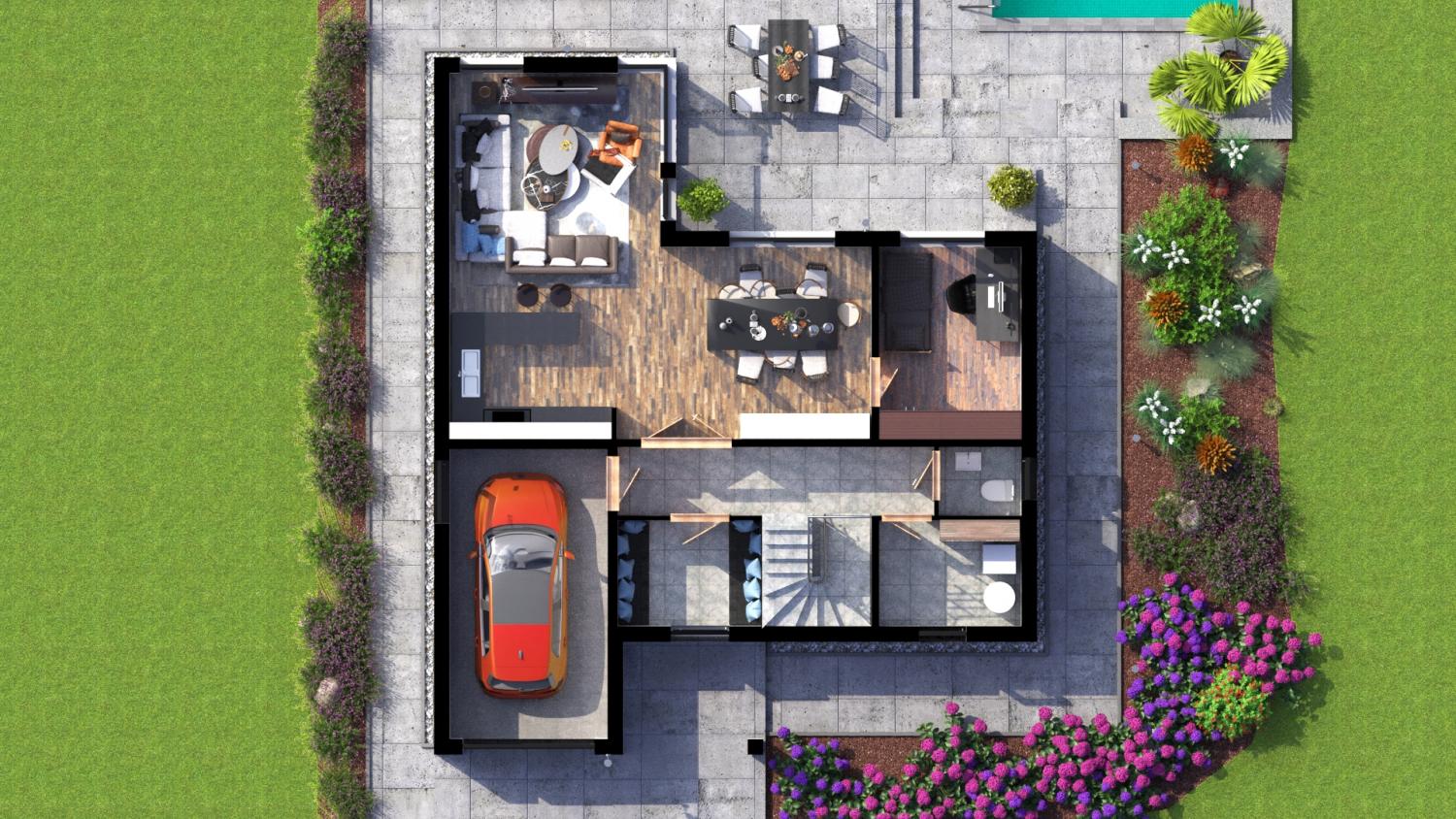 Dispozice projektu pamatuje i na volitelnou terasu a nebo stání pro druhý automobil.
